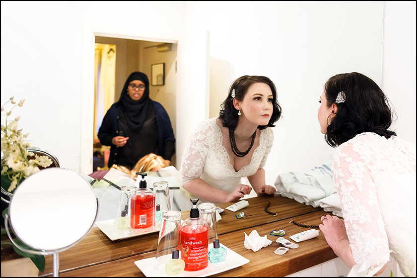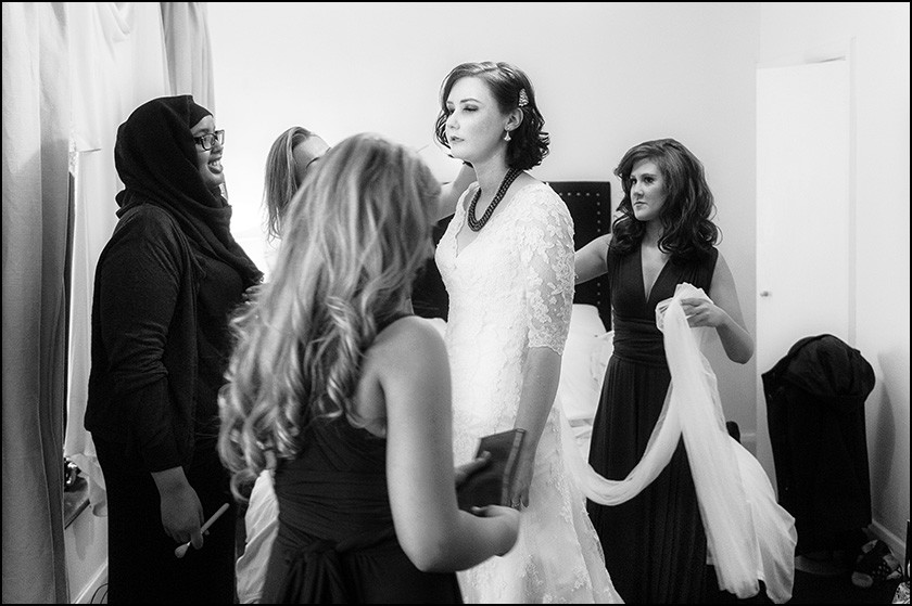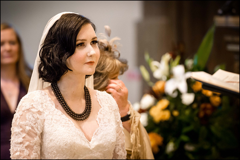 I started my day at the Racquet Club Liverpool Centre for Elizabeth’s bridal preparations. Elizabeth was surrounded by her mum and friends and had a lovely chilled morning. It was a lovely atmosphere which this Liverpool wedding photographer really enjoyed photographing. As always time soon begins to fly and it was time for Elizabeth to get into her wedding gown. Elizabeth looked striking in her fitted dress and really looked the victorian bride with her dark hair.
