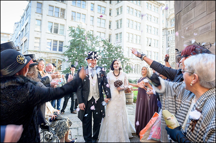 Elizabeth and Craig’s wedding at St Nicholas Liverpool and the Racquet club promised to be a whole lot of fun. It going to be Victorian-themed with top hats and goggles. Craig had also managed to gain access to 22-24 Chapel Street roof terrace with amazing city views of both st Nicks and the Liver building. It doesn’t get any more Liverpool!?